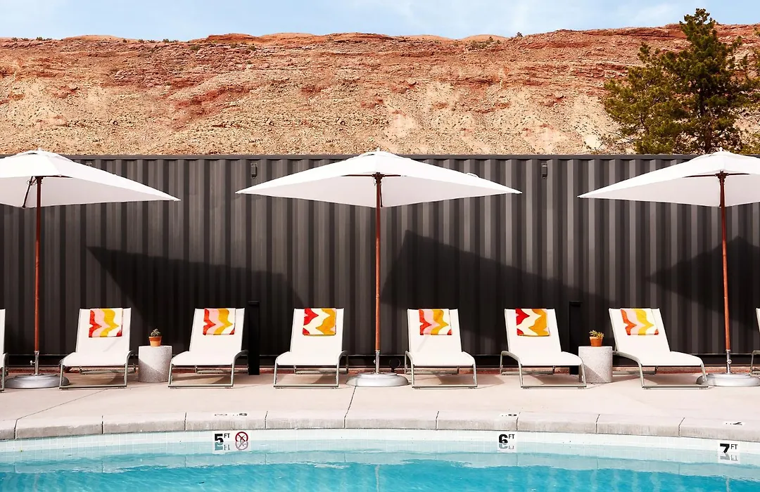 Field Station Moab, a 4-star hotel rated 8.9/10 on Booking.com, offers a variety of accommodations from van life spots to hotel rooms, catering to different group sizes. The hotel features amenities such as a Gear Shop, free WiFi, and on-site dining options including Little Station Coffee + Kitchen.