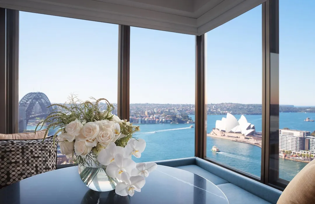 The Four Seasons Hotel Sydney offers stylish accommodations including Deluxe City Rooms, Premier Partial Harbour Rooms, and Two-Bedroom Presidential Suites. Many rooms feature floor-to-ceiling windows that provide striking views of Sydney's skyline and iconic attractions, such as the Sydney Opera House and Harbour Bridge.