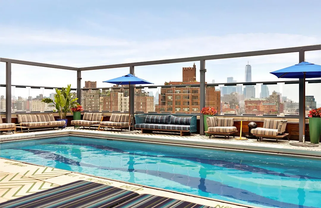 Gansevoort Meatpacking NYC is a 5-star hotel offering luxurious amenities and a vibrant nightlife in the heart of the Meatpacking District. Key features include a 45-foot heated outdoor rooftop pool, a chic restaurant, and a full-service Exhale Spa. The property provides stylish accommodations with breathtaking views of New York City.