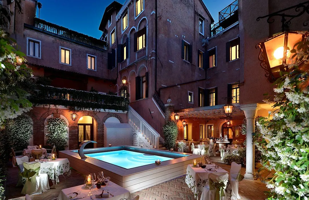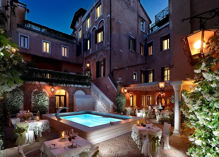 Hotel Giorgione, a 4-star hotel with an 8.5/10 rating, features an exclusive courtyard with a salt-water whirlpool and maintains the charm of historic Venetian residences. The property offers essential services such as 24-hour reception and laundry service.