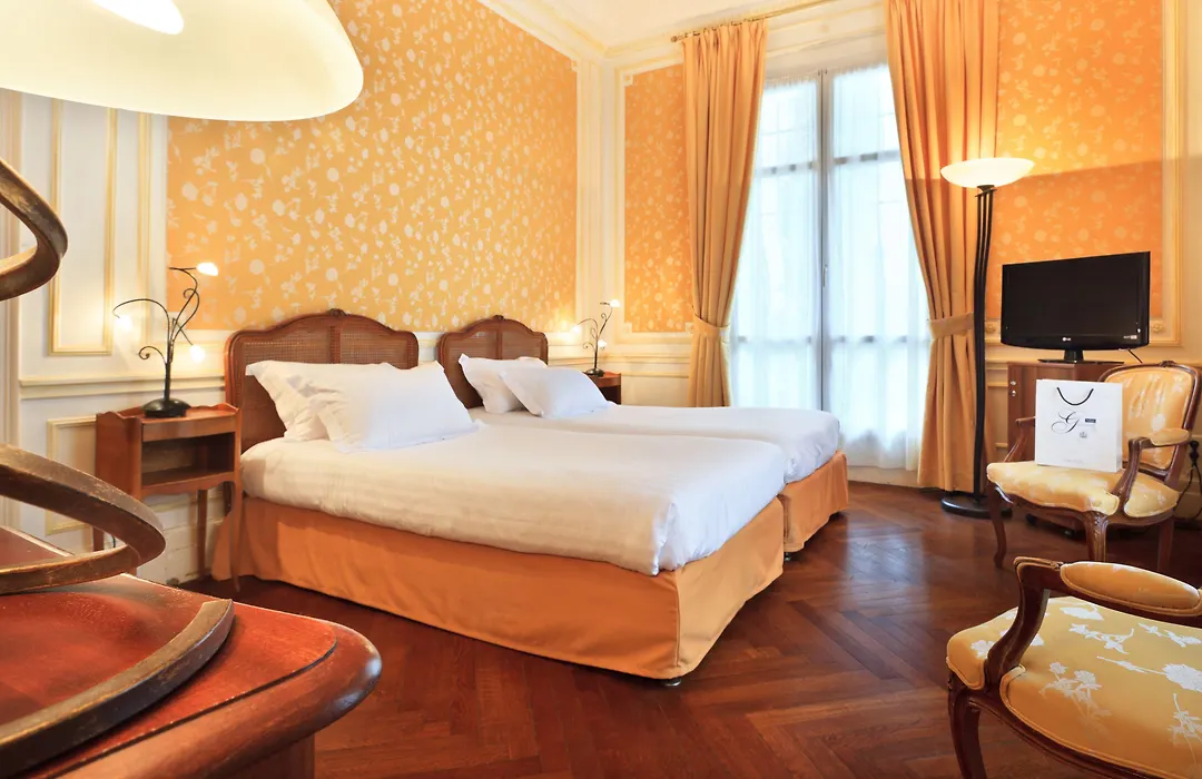 Hotel Gounod Fully Renovated, a 4-star boutique hotel in the Musicians district, offers a blend of historical charm and modern amenities. Guests enjoy free access to the Splendid Hotel & Spa's rooftop pool, spa, and fitness center, along with a quality buffet breakfast featuring organic products.