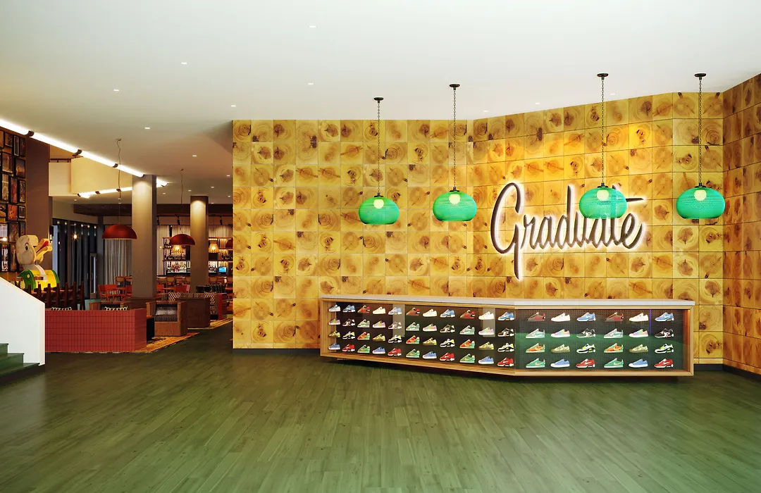 Graduate By Hilton Eugene offers a unique blend of local history and college nostalgia, featuring vibrant interiors inspired by the University of Oregon. This 4-star Eugene hotel provides numerous amenities including an indoor pool, fitness center, and pet-friendly accommodations.