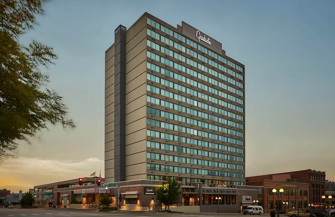 Graduate By Hilton Lincoln, a 4-star hotel with a 7.5/10 rating on Booking.com, features a modern design with vibrant decor inspired by local themes. It offers an outdoor pool, restaurant services including a bar, and a cozy lounge area, making it suitable for both leisure and business travelers.