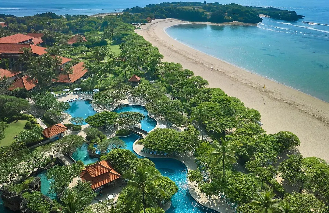 Grand Hyatt Bali is a 5-star hotel featuring extensive amenities including a spa, lagoon-style pools, and various dining options within a serene tropical setting. The property boasts 636 luxury rooms thoughtfully designed for comfort.