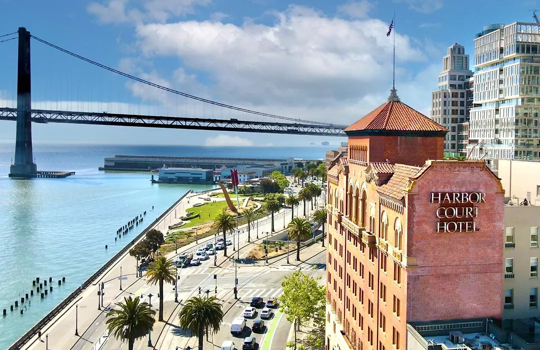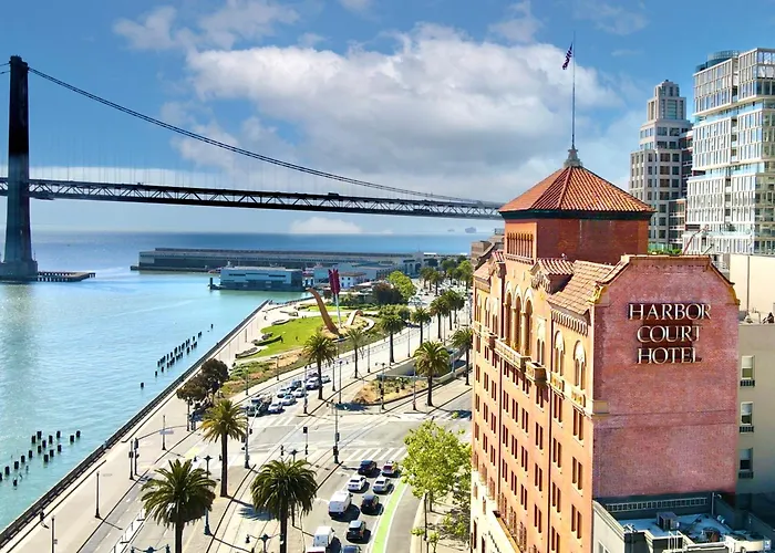 Harbor Court Hotel, a 4-star San Francisco hotel with an 8.3/10 Booking.com rating, features amenities such as direct access to the YMCA, a complimentary continental breakfast, and an upscale Japanese restaurant, Ozumo. The hotel combines modern design with reflections of its historic surroundings.