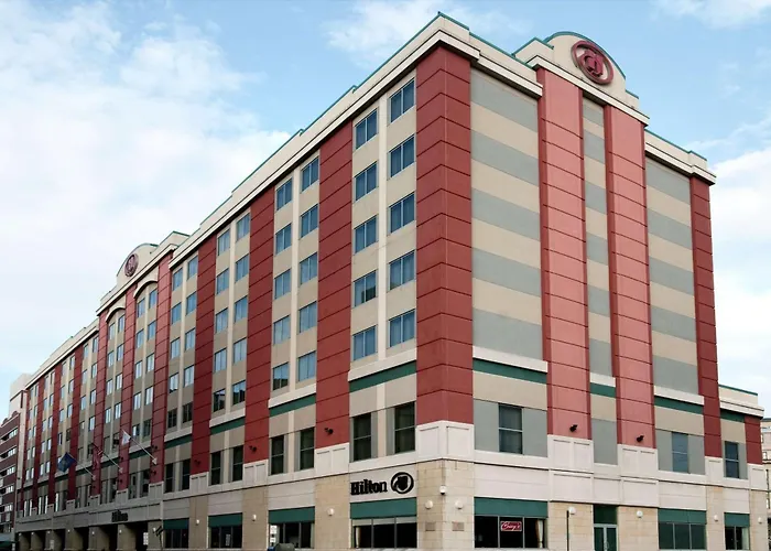 Hilton Scranton & Conference Center offers 4-star accommodations with 193 rooms and various amenities in downtown Scranton. The hotel features a full-service restaurant and a fitness center. It is conveniently accessible via a free airport shuttle from Wilkes-Barre/Scranton International Airport, just 9.5 miles away.