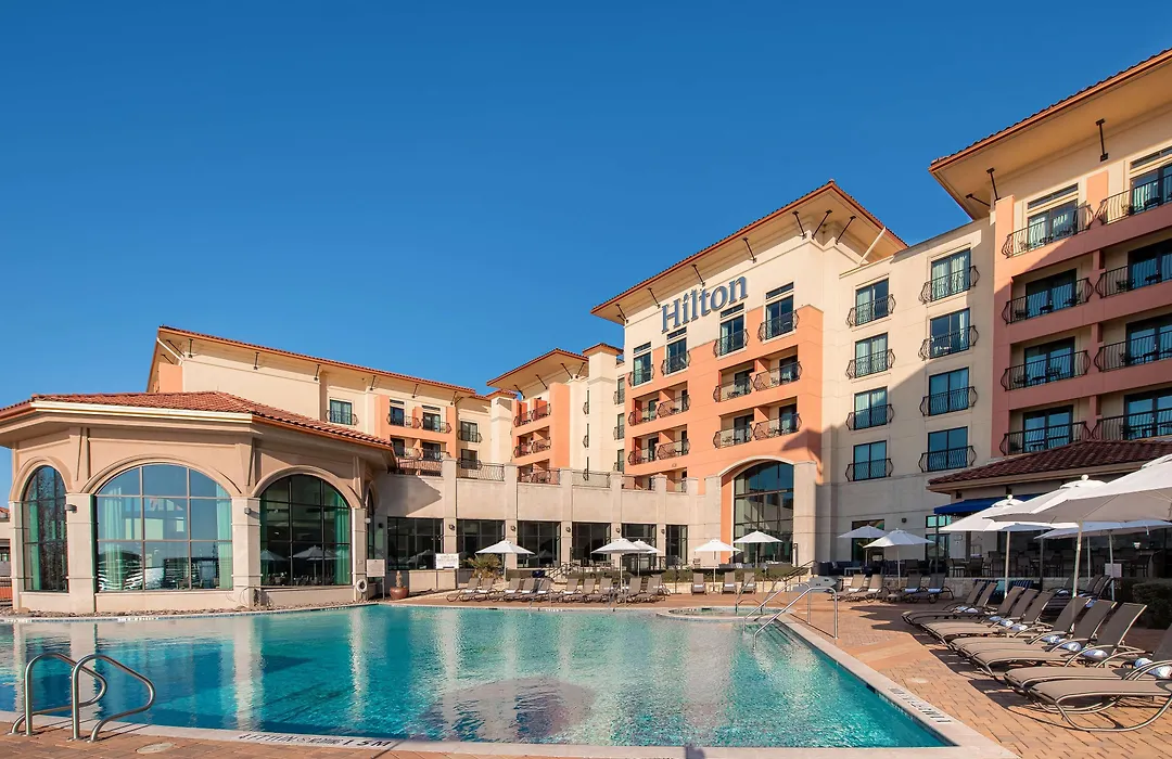 The outdoor pool area offers ample seating, including cabanas along with recreational options like a fitness center. The hotel's meeting facilities span over 34000 sq feet, including a ballroom and 17 meeting rooms suitable for various events.