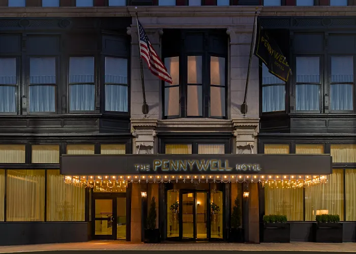 Hilton Pennywell St Louis At The Arch, a 4-star hotel with a 7.7/10 Booking.com rating, offers modern American dining and elegant accommodations in the heart of downtown. This historic hotel is pet-friendly and features a well-equipped fitness center.