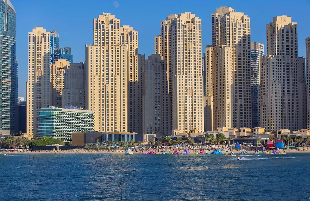 Hilton Dubai The Walk, a 4-star Dubai hotel with an 8.7/10 Booking.com rating, features direct access to the beach and numerous shops, restaurants, and entertainment options along the bustling promenade of The Walk in Jumeirah Beach. The hotel includes a fitness center, rooftop dining, and award-winning restaurants.