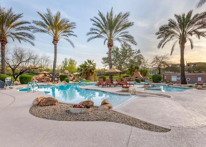 Discover the Wild West at Hilton Vacation Club Rancho Manana, a secluded retreat in the desert foothills of Cave Creek with 3-star accommodations. This eco-friendly vacation home features a year-round outdoor pool, a spa tub, and a golf course adjacent to the property.