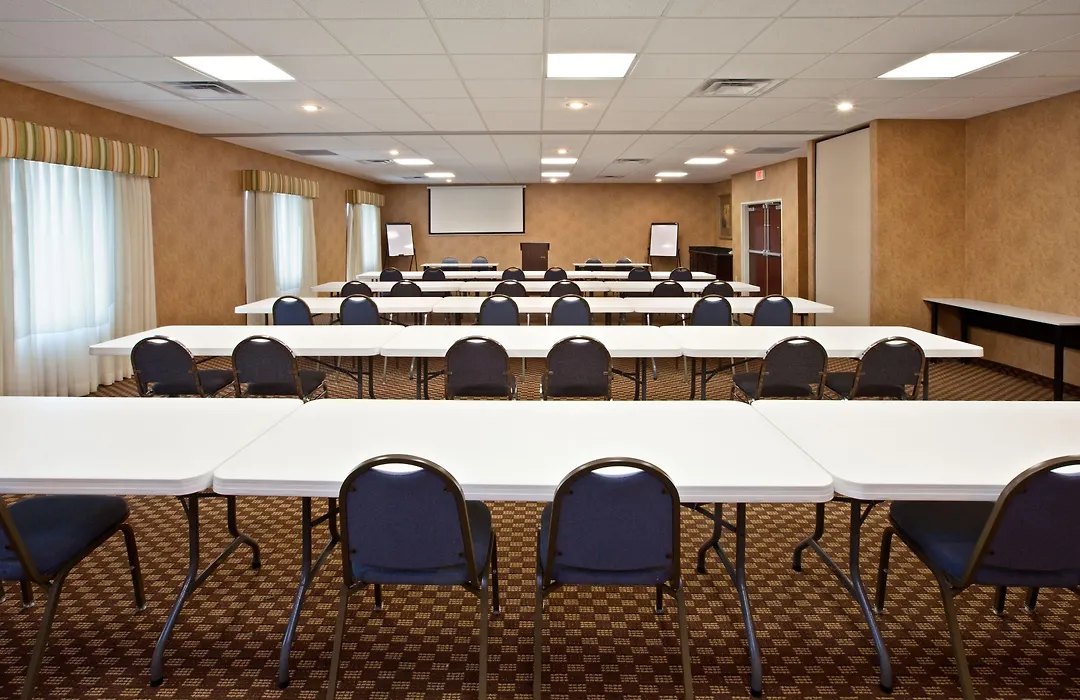 For business needs, a 1350-square foot meeting room is available, accommodating up to 45 participants. The Holiday Inn Express provides complimentary parking and features a 24-hour business center.