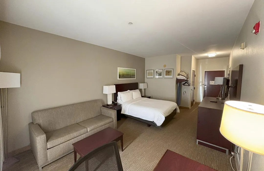 Each guest room at Holiday Inn Express is equipped with air conditioning, cable TV, a microwave, and a refrigerator. Amenities such as bedside outlets and multiple pillow options ensure that guests can enjoy a restful night.
