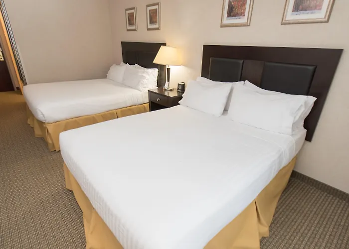 The Holiday Inn Express provides leisure activities including a complimentary water park, an indoor pool, and a hot tub primarily for adults. Guests may also take advantage of the onsite fitness room equipped with free weights and cardio machines. Outdoor recreational areas nearby include Halli Reid Park, offering swimming during summer and ice fishing in winter.