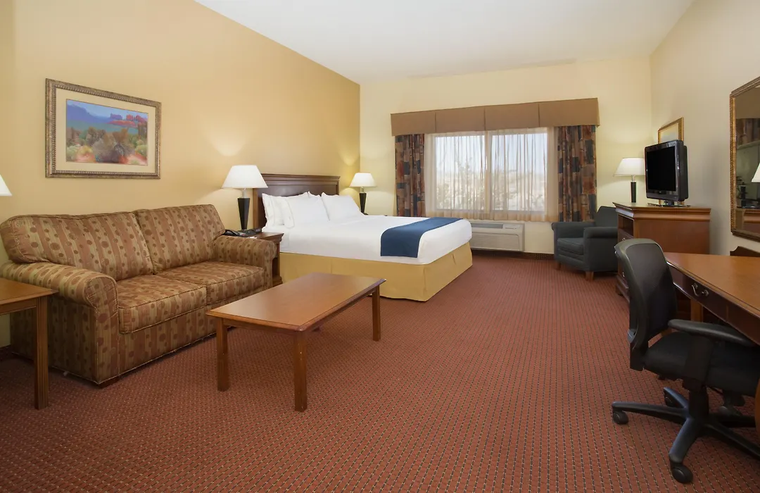 Rooms at Holiday Inn Express feature air conditioning, a flat-screen multimedia TV, and a large work desk with an ergonomic chair. Guests can choose from various pillow options and enjoy complimentary Wi-Fi throughout the property.