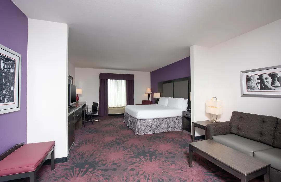 Rooms at Holiday Inn Express & Suites Columbus - Polaris provide modern furnishings including flat-screen TVs and complimentary high-speed internet. Suites offer additional amenities like a microwave and mini-refrigerator, accommodating up to four guests comfortably.