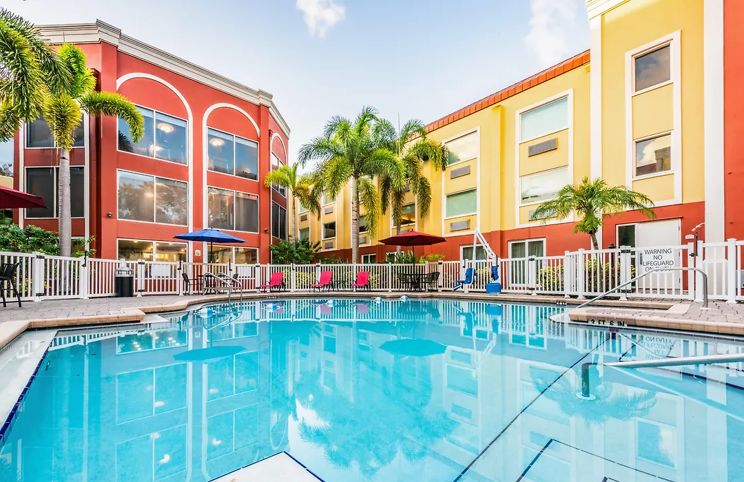 For leisure, guests can enjoy the outdoor heated pool and access a hot tub and sun deck. The fitness center is available 24 hours a day with equipment for cardio and strength training, allowing guests to maintain their workout routines during their stay.