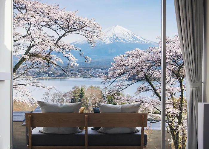 Hoshinoya Fuji is 62 miles from Tokyo International Airport, accessible via a jeep transfer steeped in scenic views. Public transportation options include the nearby Kawaguchiko Bus Station and Kawaguchikohan Station, facilitating easy exploration of landmarks such as the Kawaguchiko Museum of Art and Momiji Tunnel.