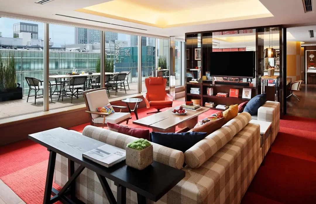 The hotel offers 164 guestrooms, each equipped with premium bedding, air conditioning, free WiFi, and safes. Many feature richly patterned red window screens etched with images of Ginza.