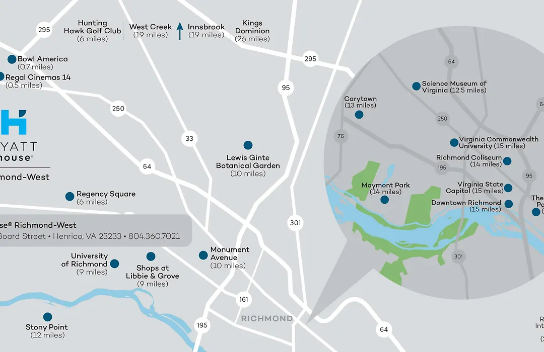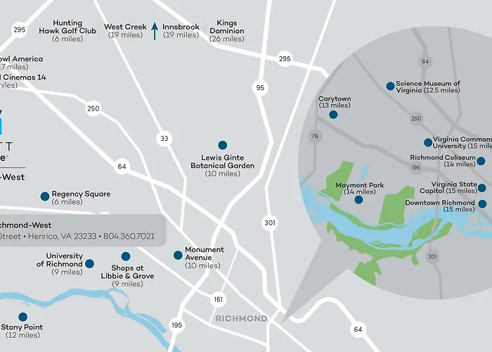 Hyatt House Richmond - Short Pump is a 3-star extended stay hotel situated in the fashionable West End of Richmond, with easy access to Interstate 64. This property features a 24-hour fitness center and a free hot breakfast for guests.