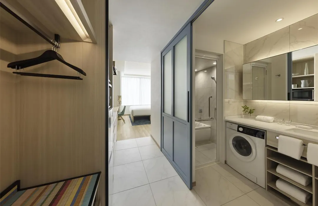 Rooms at Hyatt House Tokyo Shibuya are air-conditioned and include a flat-screen TV with cable channels, a kitchen, a dining area, and a safe deposit box. Each room features a private bathroom equipped with a bidet, free toiletries, and a hairdryer, with spacious triple rooms offering city views.