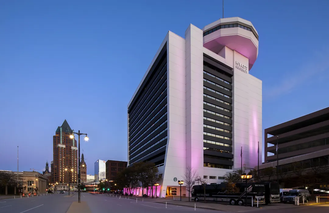 Hyatt Regency Milwaukee is a 4-star hotel featuring spacious accommodations and a full-service business center. Guests can enjoy free Wi-Fi, an on-site restaurant, and 33000 square feet of meeting space, along with easy access to attractions like Fiserv Forum and the Milwaukee Art Museum.
