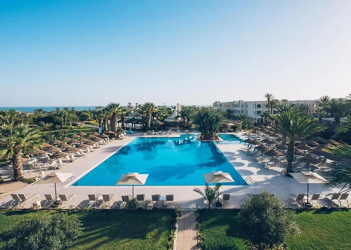 Iberostar Waves Mehari Djerba, a 4-star Taguermess hotel with an 8.7/10 Booking.com rating, offers all-inclusive accommodations and amenities for families. Guests can enjoy a 7534.5 ft² freshwater pool and various dining options, including Mediterranean cuisine at the Beach Bar.