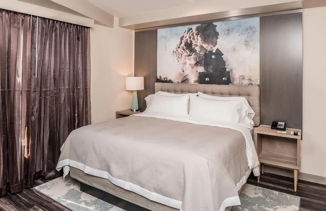 Rooms at Hotel Indigo Frisco include a flat-screen TV, mini-refrigerator, Nespresso machine, and a well-equipped work desk. Standard Rooms feature king beds with triple sheeting for a restful experience, while Premium Rooms offer additional space and exclusive bath products. Suites provide separate living areas and sofa beds for added comfort.