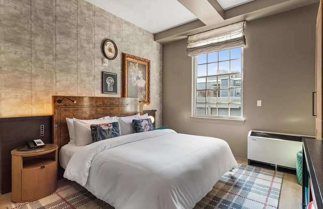 Each room at the Hotel Indigo Baton Rouge Downtown includes a 55" smart TV, complimentary Wi-Fi, coffee maker, work desk, alarm clock, hairdryer, and an iron and board. The hotel's design integrates luxury bath amenities and linens with spa-inspired showers and hardwood floors.