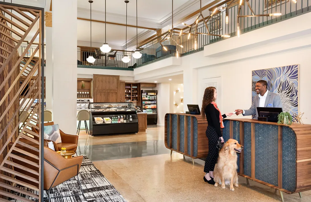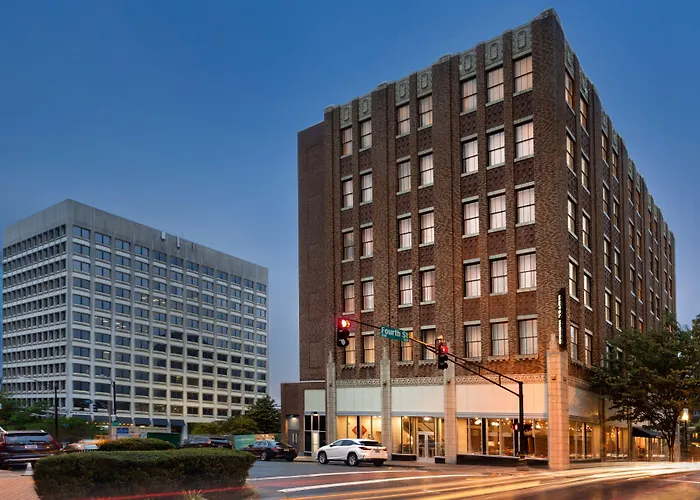 Hotel Indigo - Winston-Salem Downtown By IHG is a pet-friendly, 4-star hotel featuring Art Deco-inspired architecture and local art throughout its spaces. It offers complimentary high-speed Wi-Fi, room service, valet parking, and a Starbucks Coffee outlet.