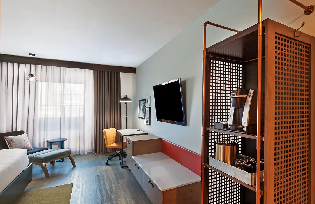 Rooms at Hotel Indigo Tulsa Downtown feature air conditioning, exposed concrete ceilings, flat-screen TVs, and private bathrooms with walk-in showers. Each room includes a coffee machine and complimentary toiletries. Several rooms also provide stunning views of the dramatic downtown skyline.