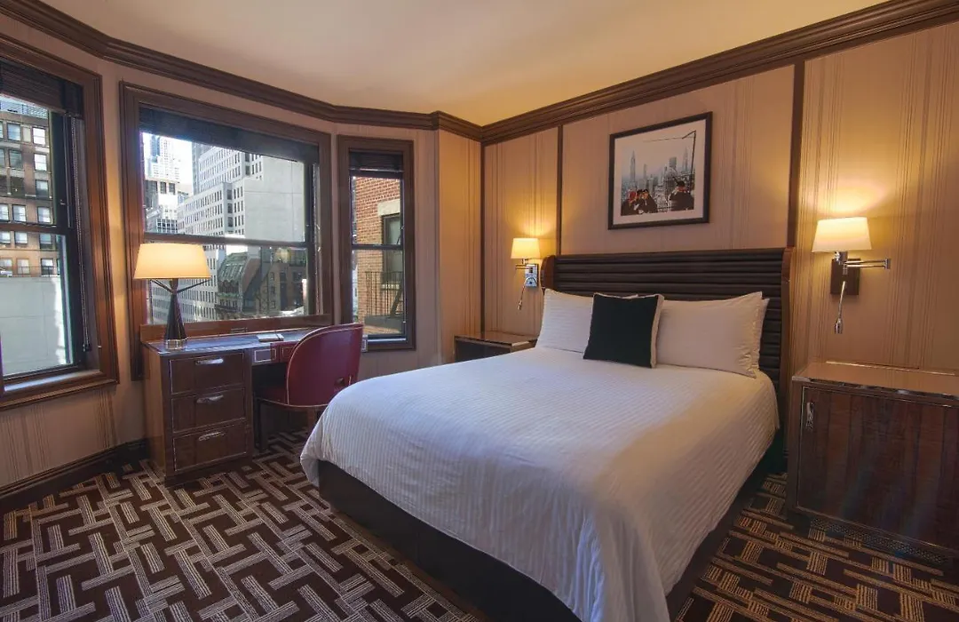 Iroquois New York Times Square is a 5-star hotel known for its blend of luxury and historic charm, situated in Midtown Manhattan. Guests can enjoy amenities such as a state-of-the-art fitness center, concierge services, and in-room dining. It's a boutique hotel experience close to the vibrant Theater District and Bryant Park.