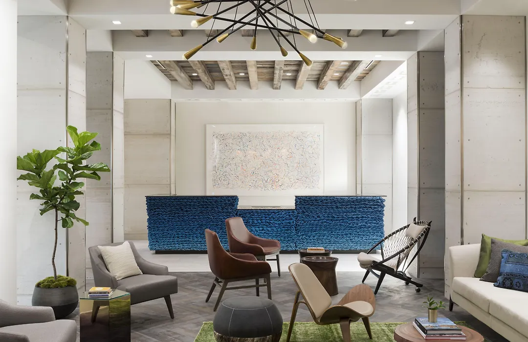 The hotel provides over 6500 square feet of flexible meeting space filled with natural light, including an elegant ballroom and rooftop venue for various events. An on-site fitness center is also available along with electric vehicle charging stations for guest convenience.