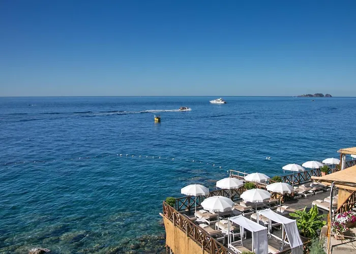 Hotel Le Agavi offers breathtaking 360° views of the bay of Positano, featuring a private beach and direct access to exclusive terraces. This 5-star Positano hotel includes a funicular for easy mobility between levels and various dining options.