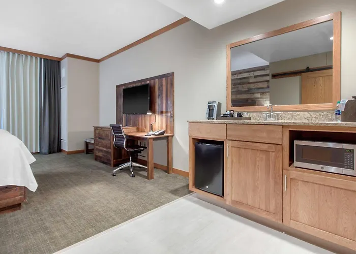 Leisure amenities include an indoor pool and hot tub area, as well as access to the 18-hole miniature golf course. The hotel is situated near the Cowboy Trail, providing opportunities for outdoor activities.