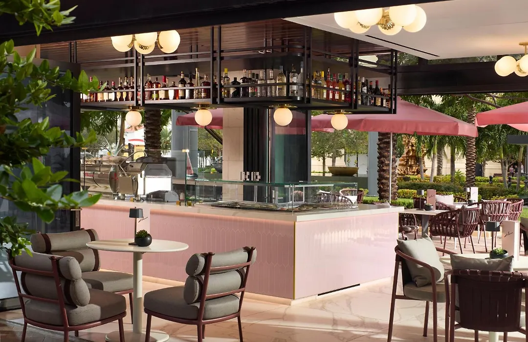 Dining options include Americana Kitchen, a restaurant serving American classics with locally sourced ingredients, and Miami Joe Coffee Co. for breakfast items. For leisure, guests have access to a 9th-floor rooftop pool along with poolside cabanas.