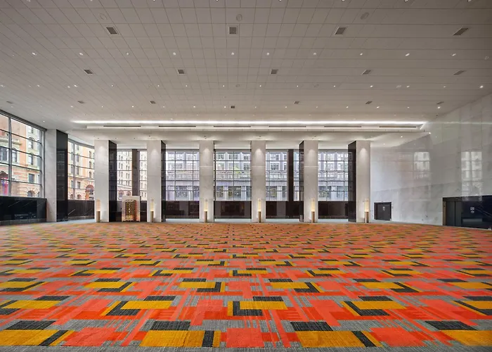 Loews Philadelphia Hotel, a Four-Diamond property rated 8.6/10 on Booking.com, is located in a historic skyscraper, the Philadelphia Savings Fund Society building, across from the Pennsylvania Convention Center. This luxury hotel offers pet-friendly services and is designed for both business and leisure travelers with various modern amenities.