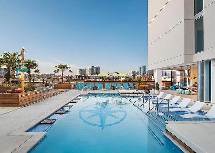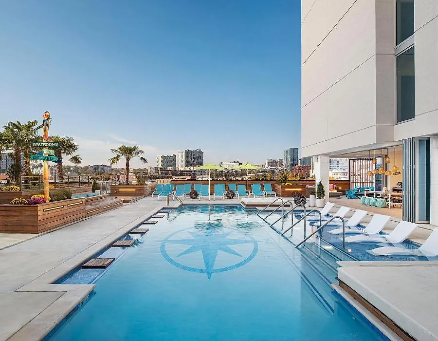 Margaritaville Hotel Nashville, a 4-star hotel rated 8.7/10 on Booking.com, offers a tropical island vibe in the heart of Nashville with amenities such as a rooftop pool and two on-site restaurants. This Nashville hotel caters to a variety of guests with features designed for relaxation and entertainment.
