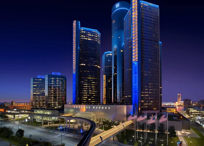 Detroit Marriott at the Renaissance Center, a 3-star hotel with a 7.6/10 Booking.com rating, is situated within the iconic GM Renaissance Center. Guests benefit from a contemporary design, a lively dining experience at Volt Restaurant, and stunning views of the city and river.