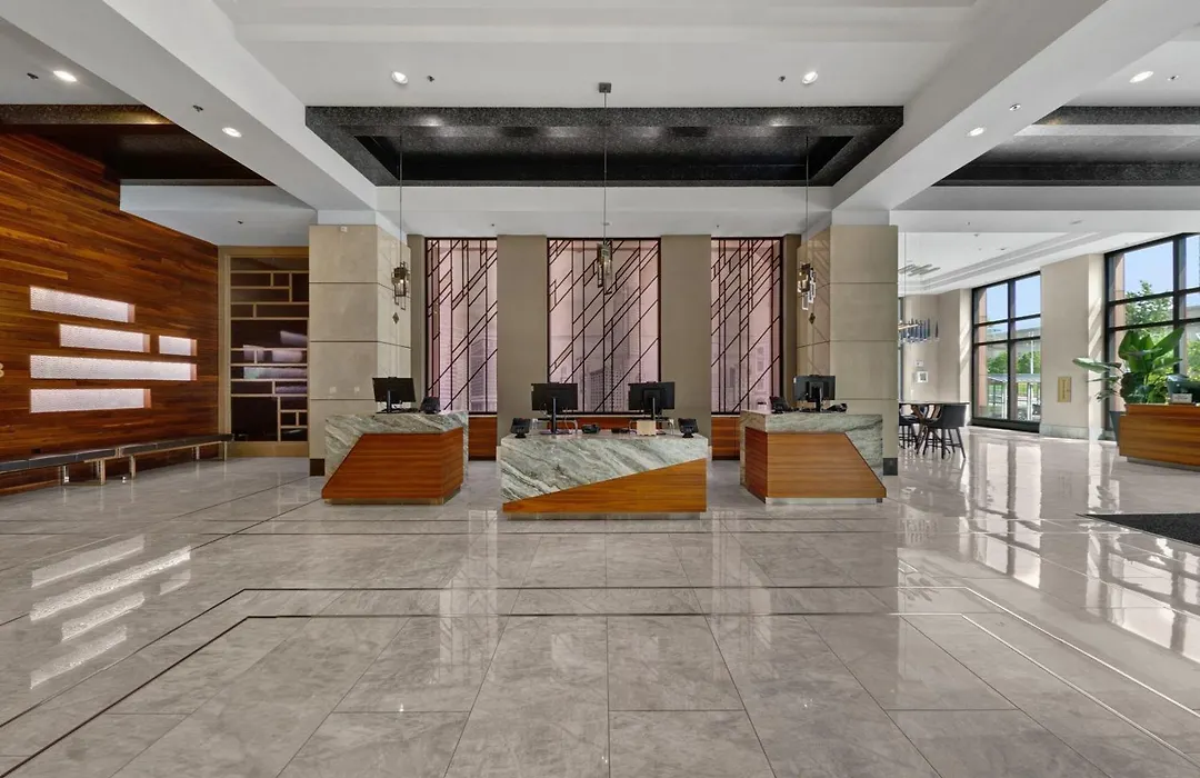 The hotel features a modern fitness center and The Spa at Ascend for relaxation. Redesigned meeting spaces, including a Grand Ballroom and outdoor patio, are available for events, providing scenic views of Lake Erie and the Cleveland skyline.