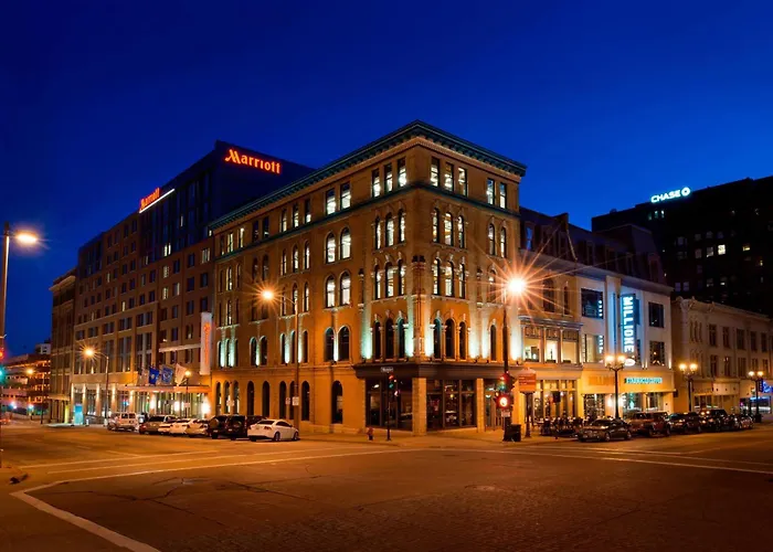 Milwaukee Marriott Downtown, a 3-star hotel with an 8.5/10 rating, offers spacious accommodations equipped with pillowtop mattresses and flat-panel TVs. On-site amenities include an indoor pool, fitness center, and the East Town Kitchen + Bar for dining.