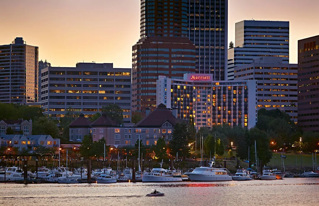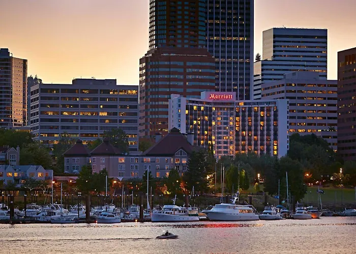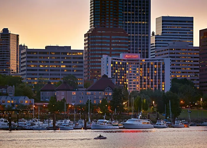 Portland Marriott Downtown Waterfront, a 4-star hotel with an 8.2/10 rating on Booking.com, features a waterfront location surrounded by more than 60 breweries. This family-friendly hotel offers convenient amenities including valet parking, a fitness center, and electric car charging stations.
