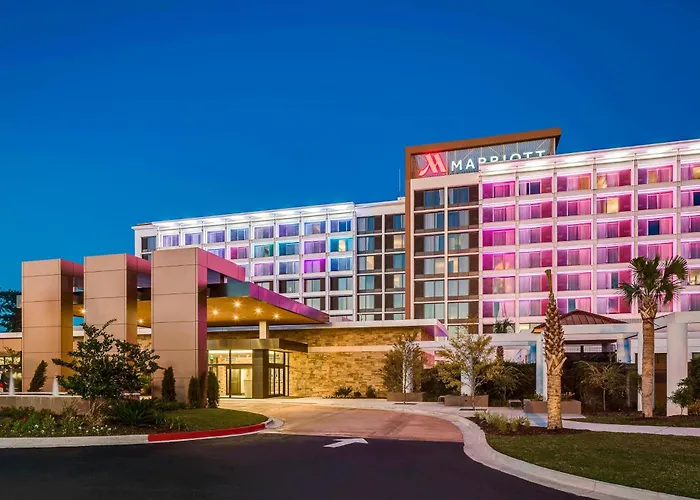 North Charleston Marriott offers modern accommodations with southern charm, featuring a blend of sleek design and state-of-the-art technology. This 3-star hotel provides an outdoor pool, 24/7 fitness center, and free transfer service to Charleston International Airport, located 2.5 miles away.