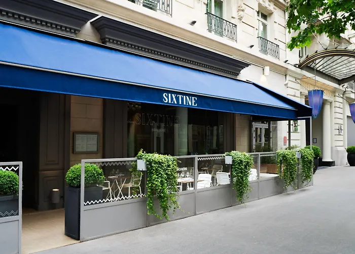 Dining options at the hotel include the signature restaurant Sixtine, which offers modern brasserie cuisine, and Bar Lindbergh, featuring art deco design and a menu of hot and cold lounge meals. Guests can enjoy a gourmet American-style breakfast buffet at Sixtine, which includes traditional morning classics and a live egg station.