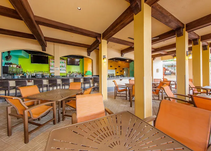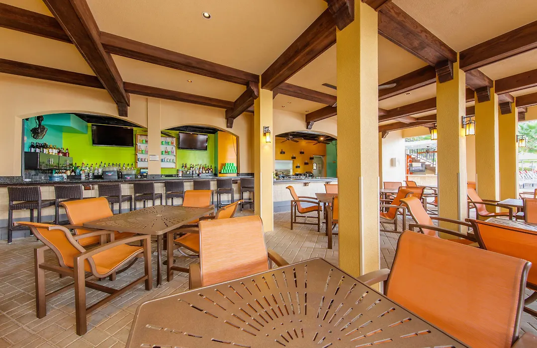 Dining options include the Sunset Cove Bar & Grille, which offers open-air dining with ocean views and a menu featuring American cuisine. Guests also have access to a market for snacks and drinks during their stay.