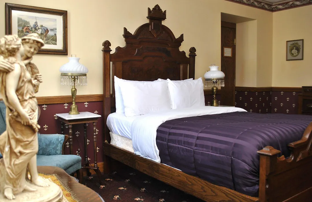 Rooms at Hotel Millersburg feature traditional decor and include amenities such as flat-screen TVs, coffee makers, and private bathrooms fitted with bathtubs or showers. A range of options is available, including single, double, queen, king, and suite accommodations. The hotel offers 32 guest rooms, some furnished with Victorian elements.