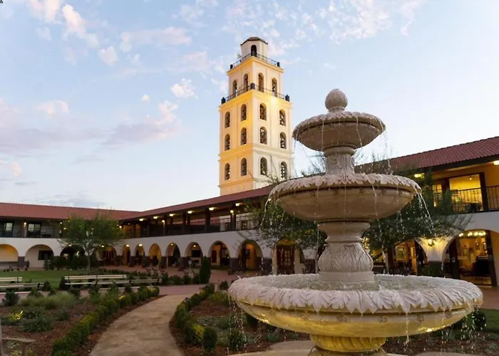 Hotel Mission De Oro includes wellness facilities such as an outdoor pool and a sauna. Guests can unwind while exploring the manicured grounds adorned with a stunning 9-story bell tower.