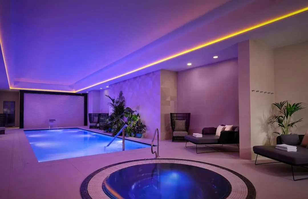 Montcalm East, Autograph Collection is a 5-star hotel known for its bold design and artistic spirit, nestled between Shoreditch and the City. It features a spa, state-of-the-art fitness center, and all-day dining at Marlowe Bar and Restaurant. The hotel is notable for its diamond-shaped architecture and art displays throughout the property.