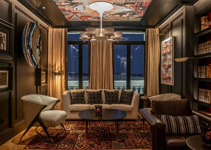 Hotel Montera Madrid, Curio Collection By Hilton is a 5-star hotel featuring a rooftop plunge pool, a restaurant, and a bar with views of the city. It is located in the vibrant district of Chueca, known for its nightlife, cafes, and shops. The hotel holds a Booking.com rating of 9.1/10.