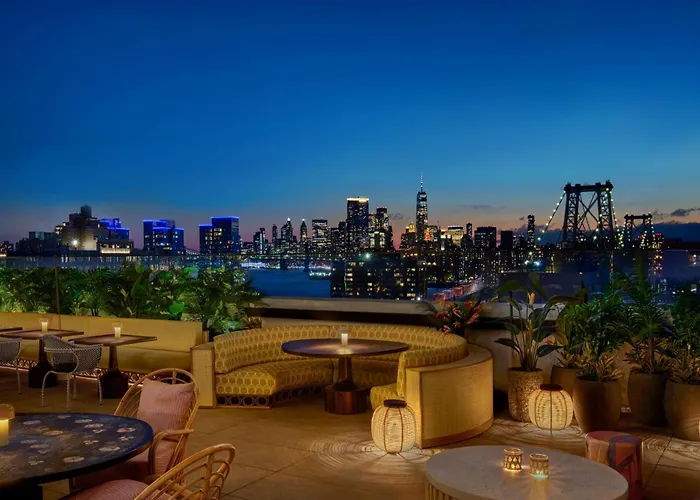 Moxy Brooklyn Williamsburg, a 4-star boutique hotel with a 7.9/10 rating on Booking.com, features air-conditioned rooms and a 24-hour front desk. Guests can enjoy a terrace, fitness center, restaurant, and bar conceived by Bar Lab.