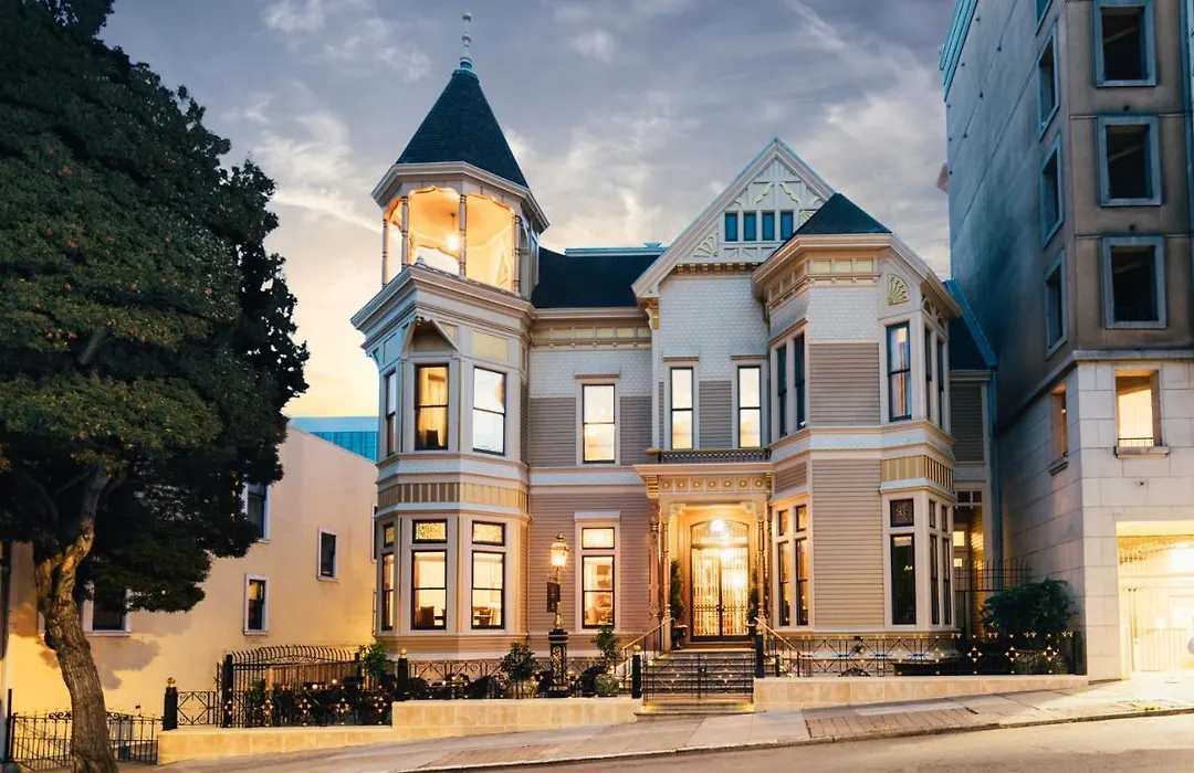 Neighbourgood Sutter Mansion is a 5-star luxury boutique hotel showcasing stunning Victorian architecture and modern amenities. This San Francisco hotel offers 12 uniquely furnished rooms featuring premium bedding and modern touches, as well as an expansive collection of art. Additional amenities include complimentary Wi-Fi, concierge services, and public areas designed with a vintage feel.